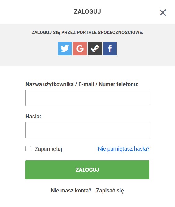 2. Wpisz dane logowania określone podczas rejestracji. Można także skorzystać z kont na portalach społecznościowych, o ile zostało ono połączone.
